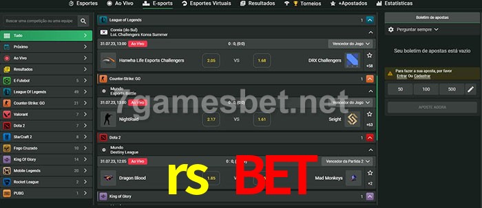 O rs bet oferece uma grande seleção de opções de apostas em e-sports com probabilidades competitivas